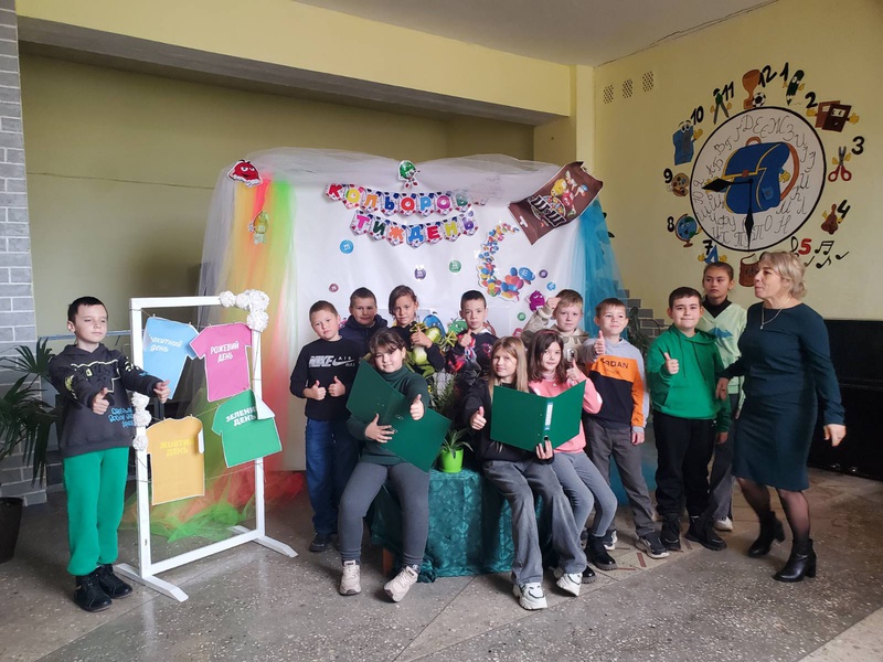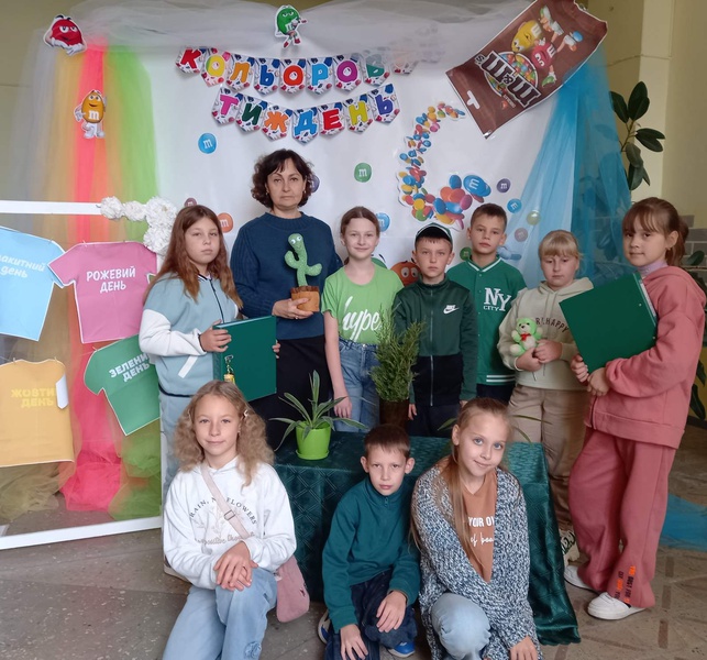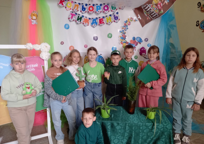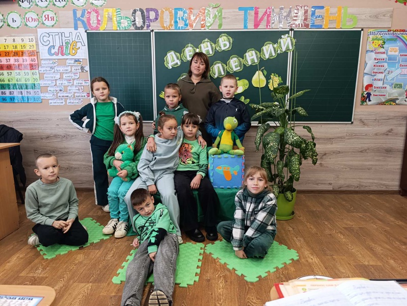 Для початкової школи цей день став захоплюючою мандрівкою у світ природи та геометрії. Маленькі школярі, оточені зеленими декораціями, із завзяттям вивчали зелені фігури: трикутники-ялинки, квадрати-поля, овали-листочки. Вони знаходили та називали зелені предмети навколо себе — травичку, жабок, яблука, листя, створюючи асоціативні ланцюжки та розвиваючи свою увагу та уяву. Уроки перетворилися на веселі, інтерактивні ігри, де зелений колір допомагав краще засвоїти новий матеріал.