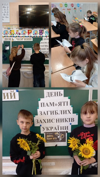 Цей день став приводом не лише підвести підсумки "кольорового тижня" та активностей, але й зупинитися, щоб вшанувати тих, хто віддав найдорожче за наше право на існування, на мирне небо і на можливість навчатися. Кульмінацією дня стало вшанування пам'яті полеглих захисників України – тих мужніх воїнів, чиї життя обірвала жорстока війна. Учні 4 класу (класний керівник Валентина ТАРЯНИК) виготовили журавлів - символи душ загиблих, прочитали молитву за полеглими Героями, схилили голови, віддаючи шану тим, хто сьогодні утворив Небесне Військо.