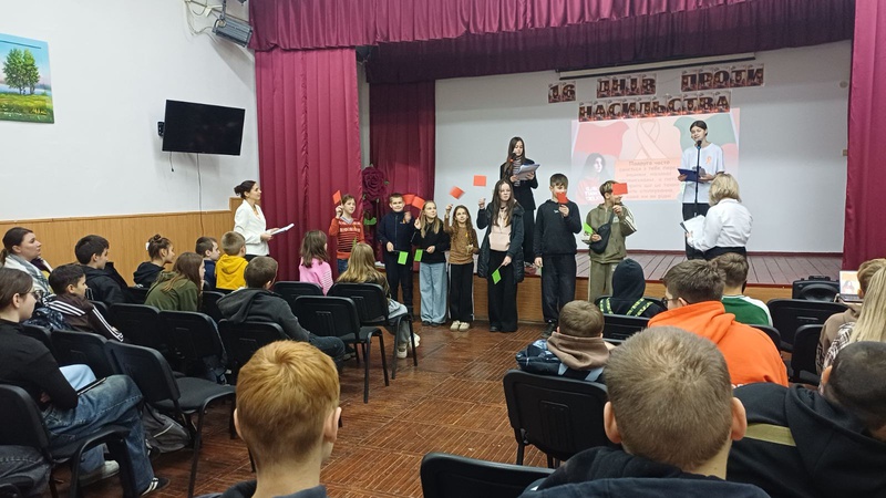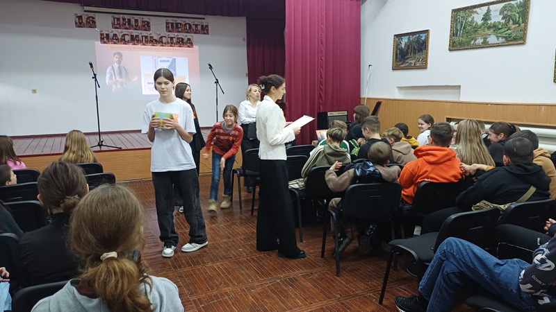 Психолог практичний Альошкіна Євгенія Олександрівна та педагог соціальний  Козин Марія Володимирівна разом з активними учнями 10 класу — Оніані Дариною та Вайнагій Анастасією — провели тематичний захід для учнів 5–11 класів.