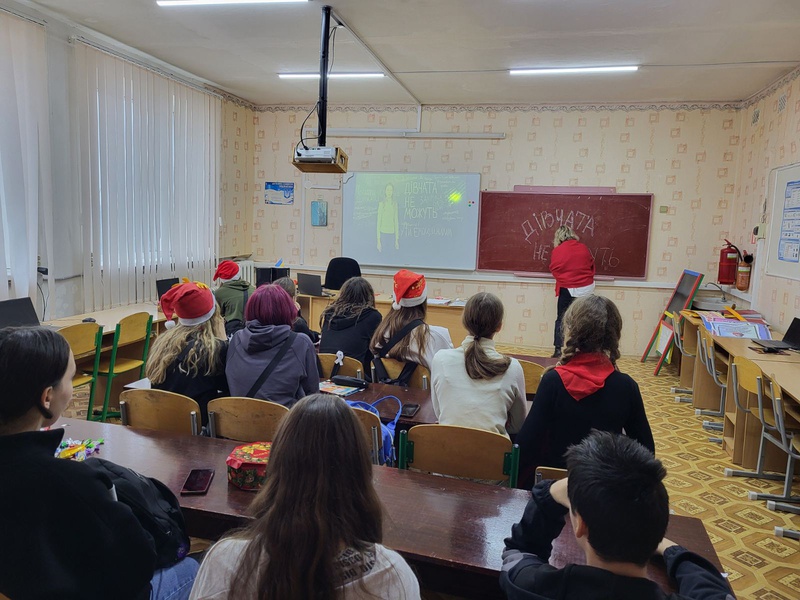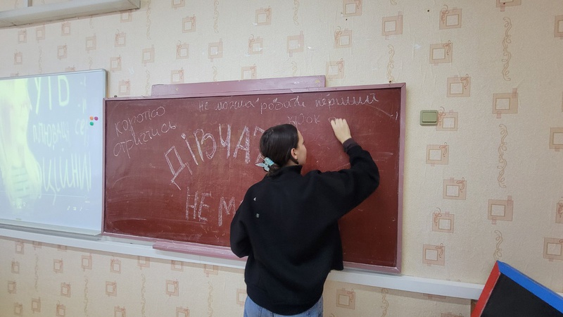 Окремою частиною зустрічі стала рефлексія дівчат, які ділилися своїми власними історіями про те, коли й де вони чули фрази на кшталт: «дівчата так не можуть», «це не для дівчат», «таке мають робити лише хлопці». Усі ці вислови учениці записували на дошці, а потім символічно закреслювали слово «не», перетворюючи його на ствердження: «дівчата можуть». Цей символічний жест став нагадуванням про необхідність подолання стереотипів і підтримки самореалізації кожної дівчини та жінки.