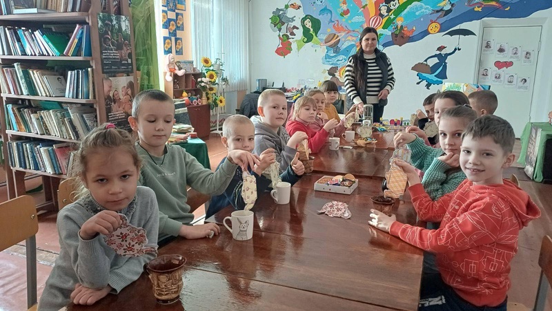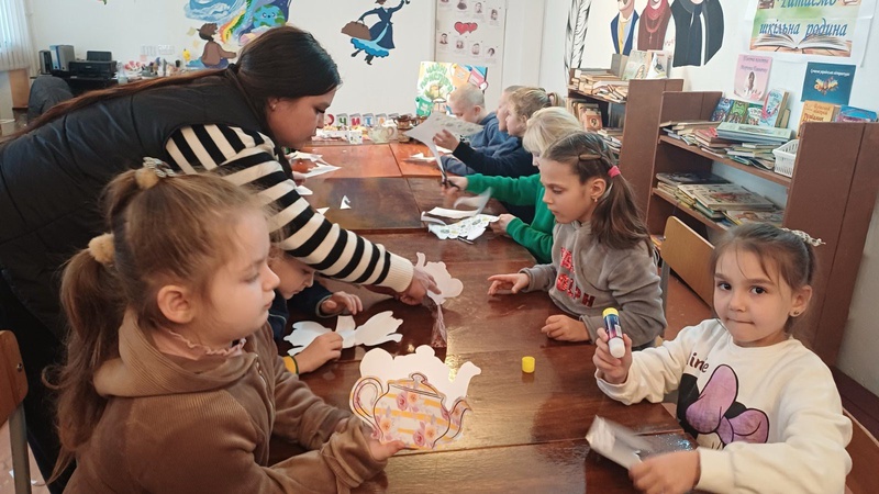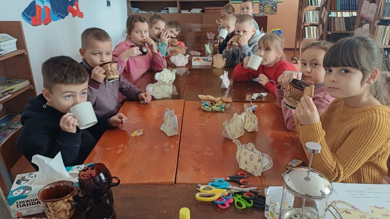 Після інформаційної частини на маленьких читайликів чекав творчий майстер-клас. Учні із захопленням робили яскраві та оригінальні аплікації на тему "Горнятко гарячого чаю". За допомогою кольорового паперу та клею діти створювали власні чайні шедеври, проявляючи фантазію та креативність.