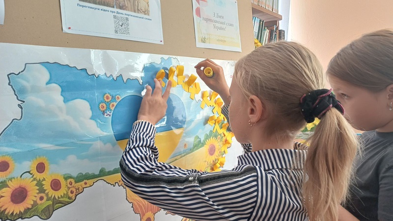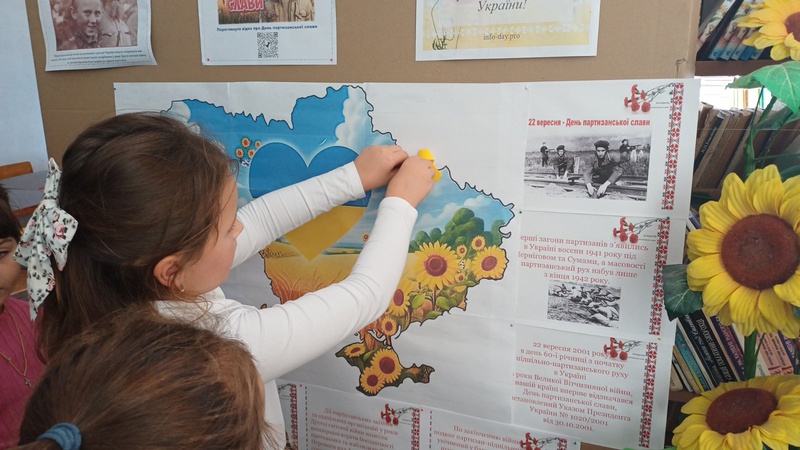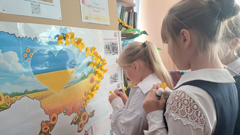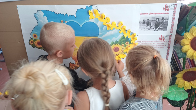 Центральною частиною заходу стало створення "Карти партизанської боротьби". Діти клеїли жовті стрічки на карту України, позначаючи міста та населені пункти, де зараз відбуваються активні бойові дії. Кожна стрічка символізувала незламність духу та силу опору, нагадуючи про партизанську діяльність, що триває і сьогодні.