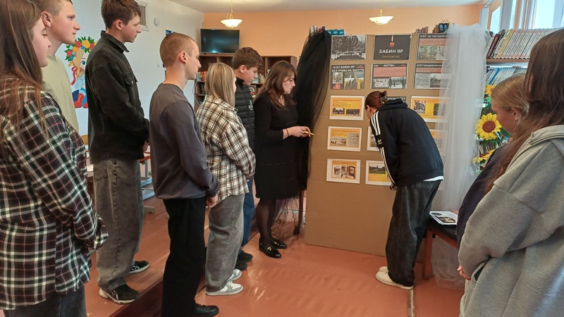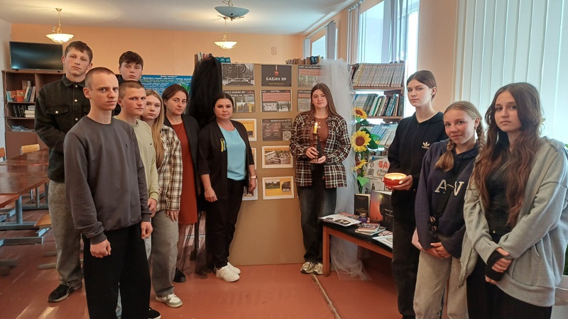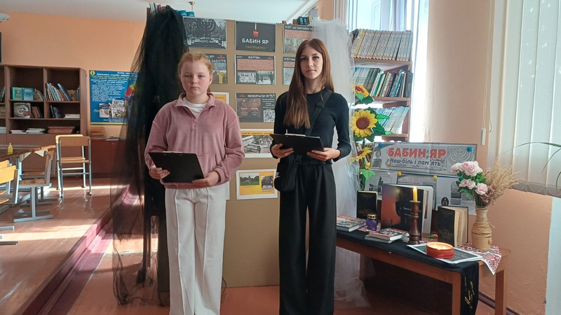 У Старобабанівському ліцеї пам’ять про цю трагедію набула особливого звучання. Учні літературного гуртка провели проникливий захід у шкільній бібліотеці, щоб вшанувати невинно убієнних та передати знання про цю страшну сторінку історії, підготували інформаційну виставку та ключові факти про трагедію, які презентували для учнівського самоврядування та всіх охочих, хто завітав до бібліотеки.
