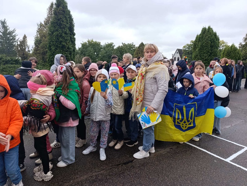 В руках ліцеїстів майоріли жовто-блакитні прапори та здіймалися в небо кульки, що додавали події особливої святковості та водночас вказували на важливість моменту.