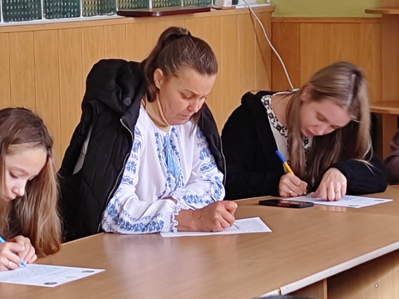 Педагогічний колектив та учні Старобабанівського ліцею зібралися у методичному кабінеті для спільного написання Диктанту, перетворивши його на осередок мовної єдності.