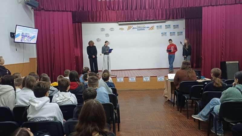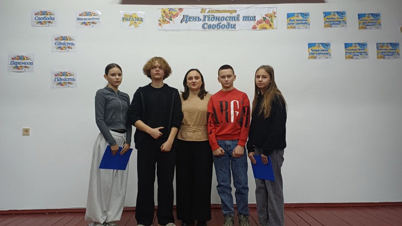 Під час заходу восьмикласники ознайомили присутніх із: історією виникнення Дня Гідності та Свободи;