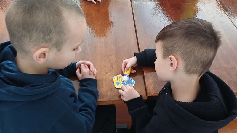 Головною подією дня стала зворушлива акція «Патріотичні долоньки єднання». Кожен ліцеїст, отримавши жовту або блакитну паперову долоньку, ставав частиною великого дійства. Учні підписували долоньки своїми іменами, після чого шукали собі пару, щоб символічно «потиснути руку» товаришу, з’єднавши жовтий та блакитний кольори нашого прапора. Скріплені пальчики цих долоньок, зафіксовані на спеціальному стенді, крок за кроком утворювали міцний ланцюг єднання. Дивлячись на цей яскравий стенд, кожен відчував: ми — різні, але ми — одне ціле, одна велика родина нашого ліцею.